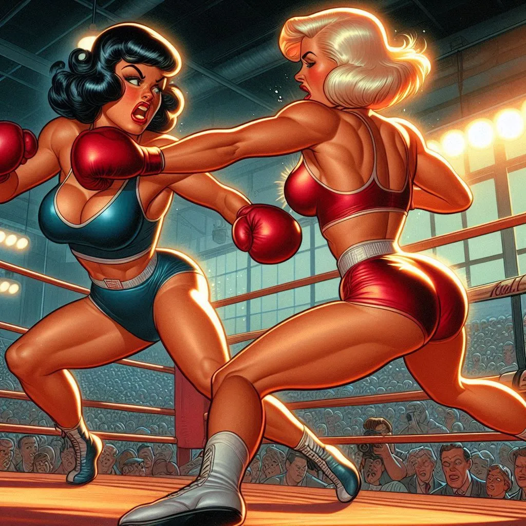 From Saturday morning cartoons to the modern adult graphic novel, we love being entertained by the products of imaginative talents, showing us things that even Hollywood can’t produce. And here we bring you curvy ladies slugging it out in various artistic styles, from the simple to the sublime. And most pretty sexy, too!