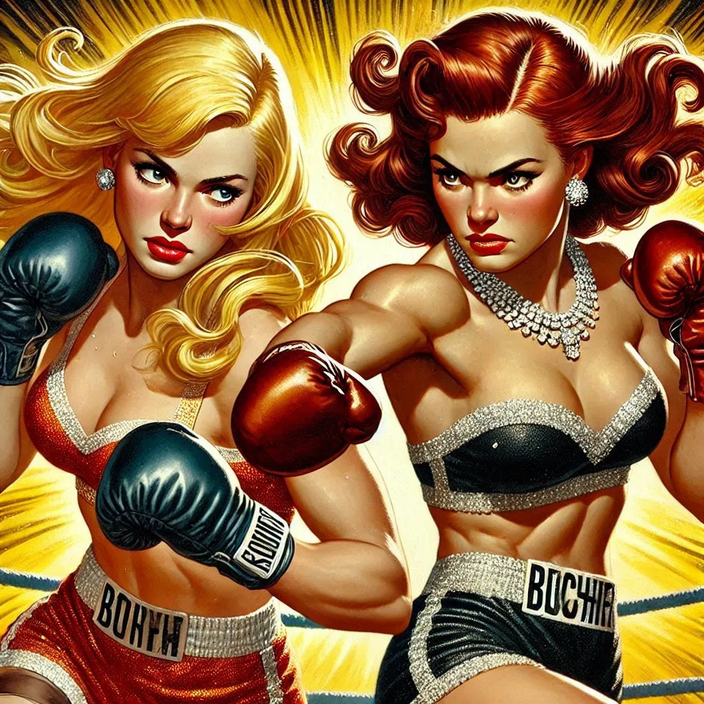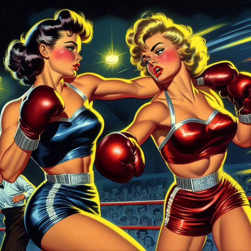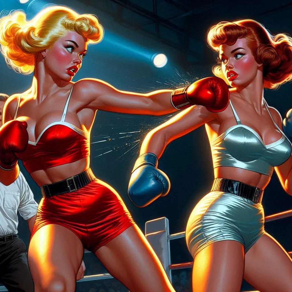 From Saturday morning cartoons to the modern adult graphic novel, we love being entertained by the products of imaginative talents, showing us things that even Hollywood can’t produce. And here we bring you curvy ladies slugging it out in various artistic styles, from the simple to the sublime. And most pretty sexy, too!